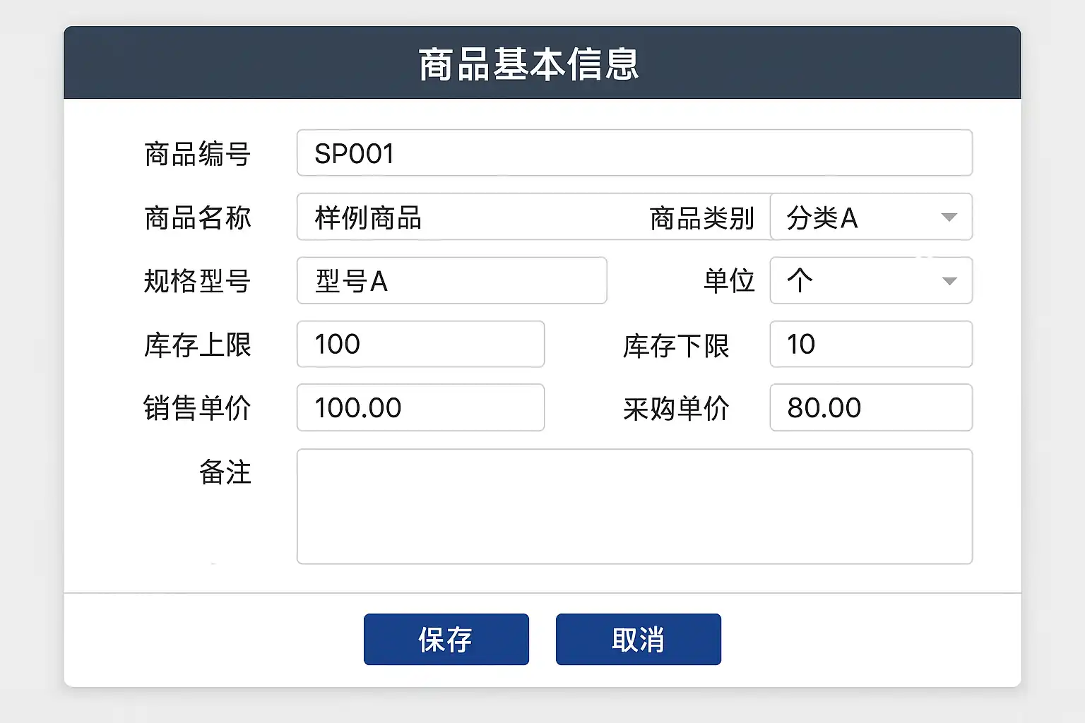 在进销存系统中,商品的基本信息构成了整个业务流程的数据核心。为了保证各类业务操作的顺利进行,建议企业在建立时重点关注以下常用字段: