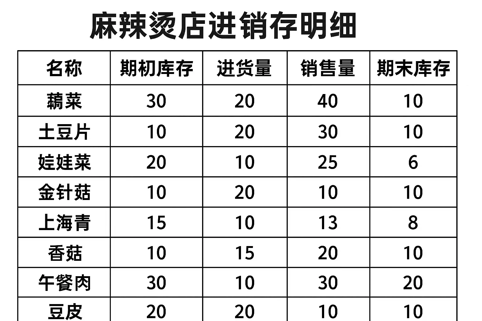 我刚开了一家麻辣烫店,对进销存管理不是特别熟悉。想知道麻辣烫店的进销存明细具体包含哪些内容,方便我做好库存和销售的管理。