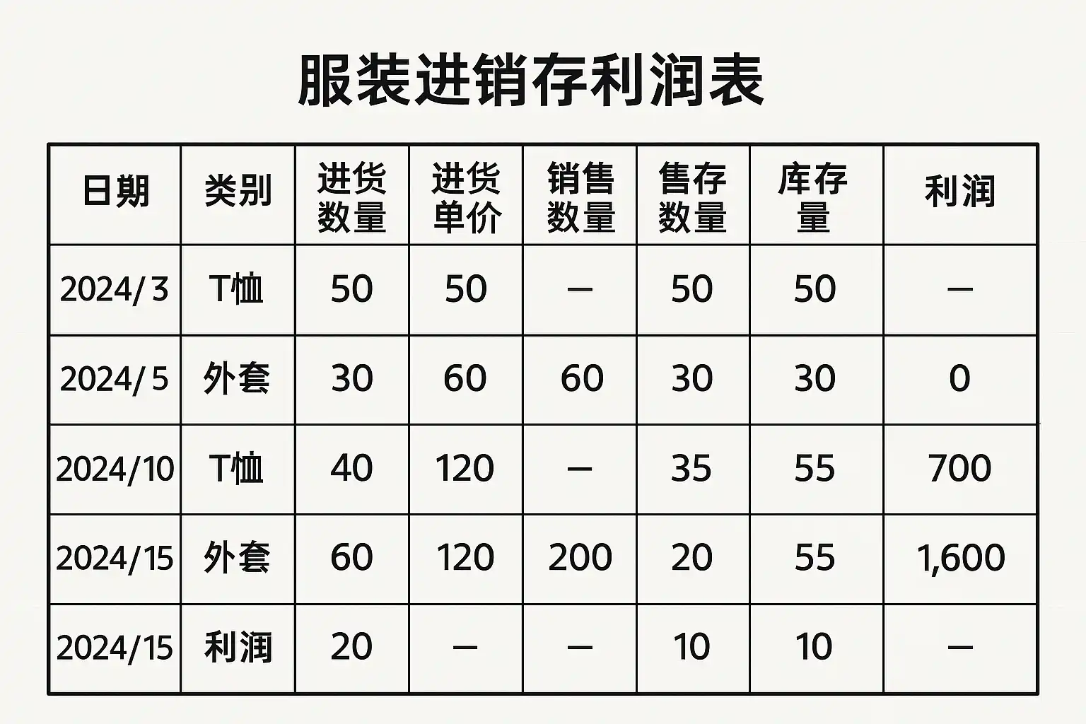 一、服装进销存利润表的基本框架