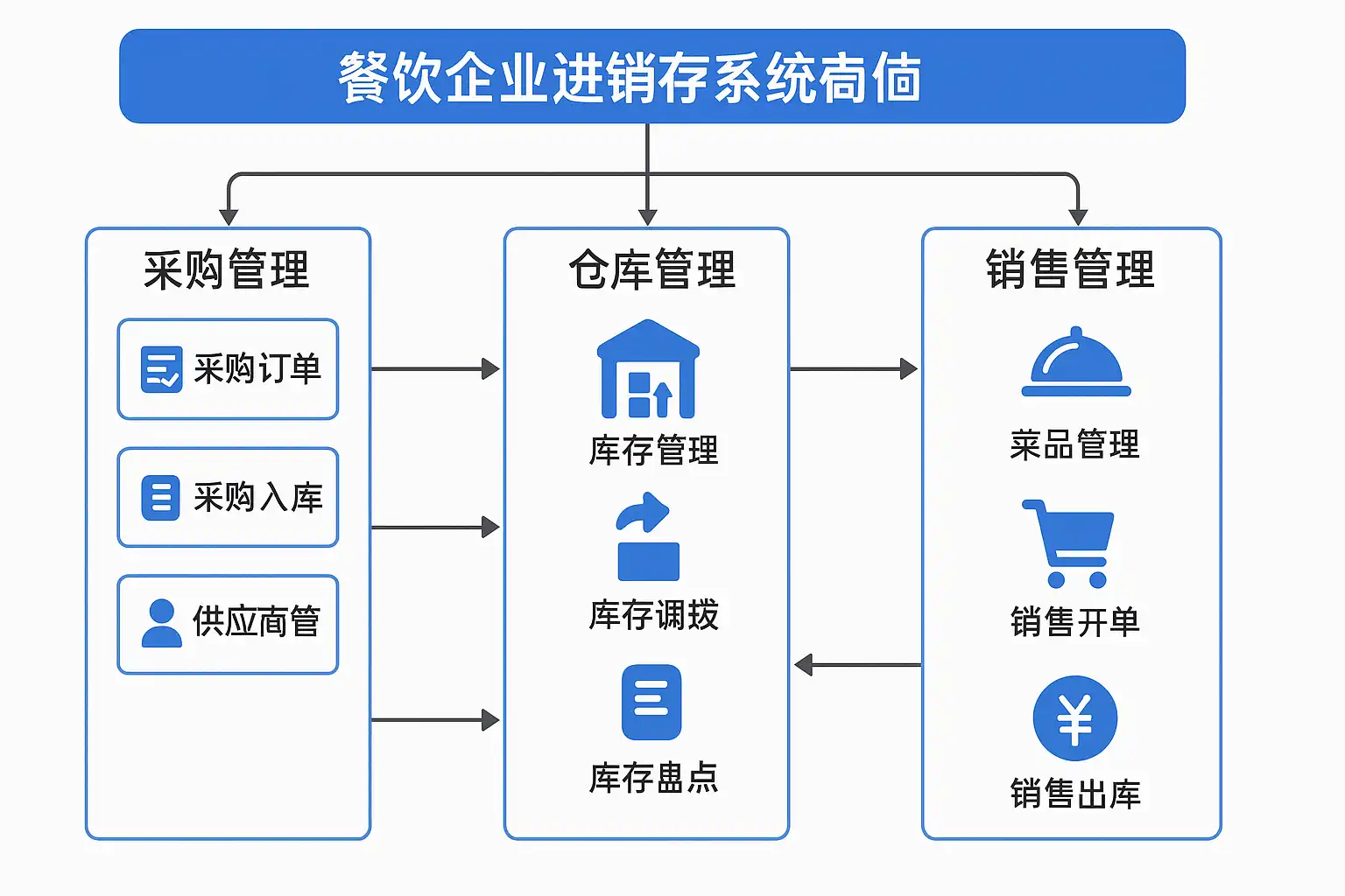 一个完善的餐饮企业进销存系统应包含以下核心功能: