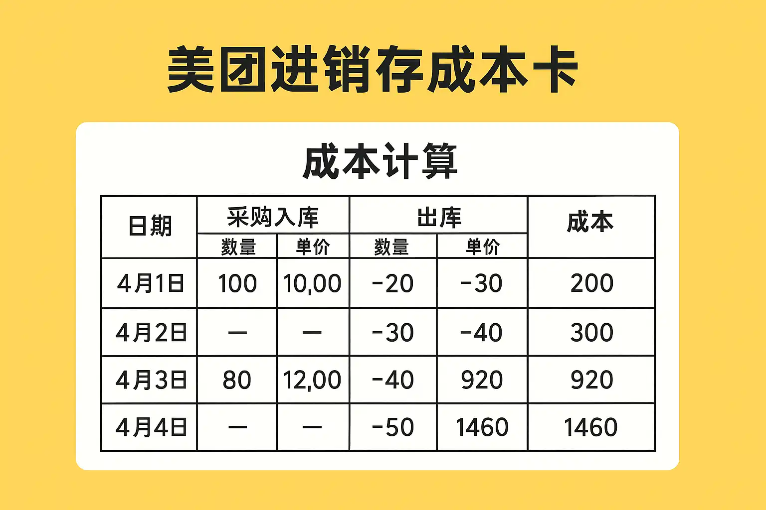美团进销存成本计算方法详解,美团进销存成本卡怎么计算成本?