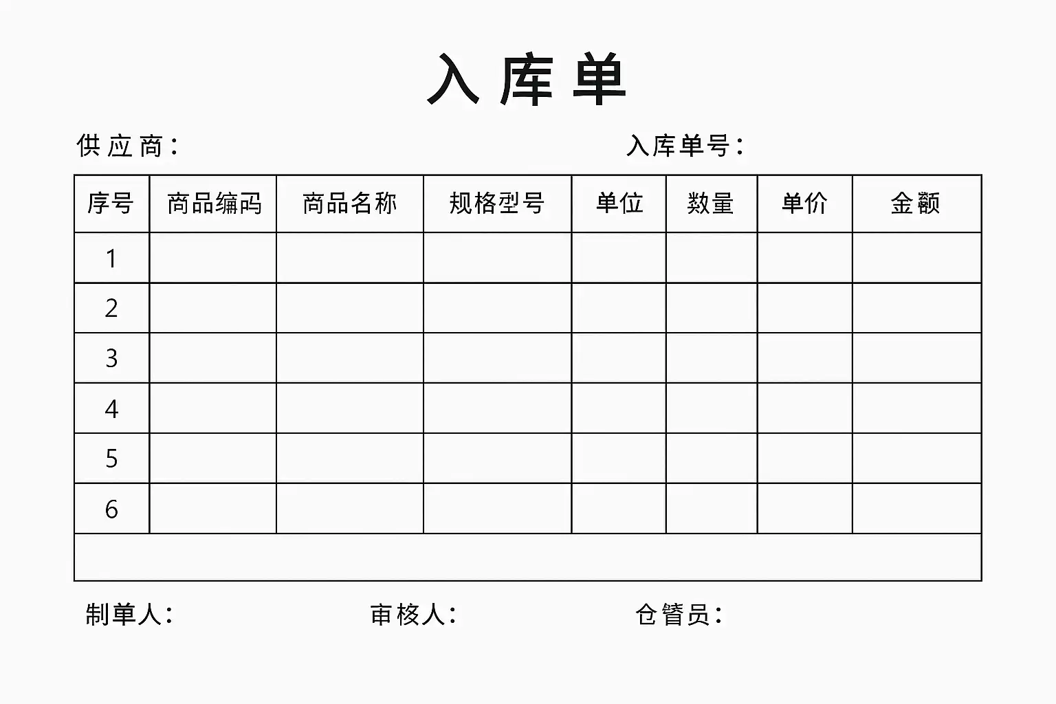 - 自动化生成模板:预设常用供应商和商品信息,一键生成标准化入库单。
