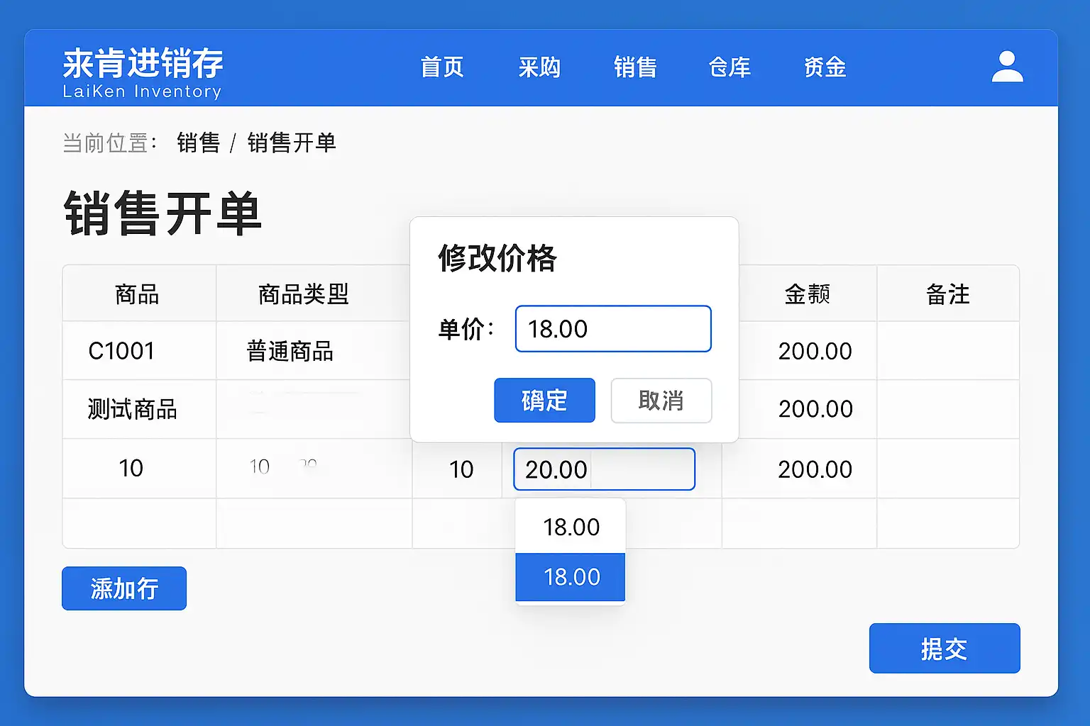 在来肯进销存系统中,修改产品售价仅影响售卖相关的金额字段,不会直接改变库存数量。