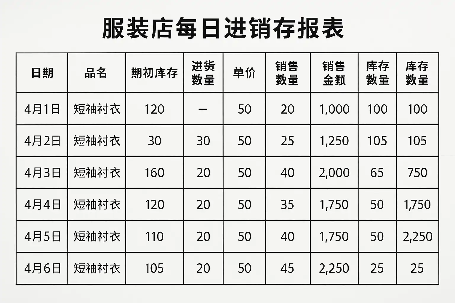 《服装店每日进销存报表怎么填》