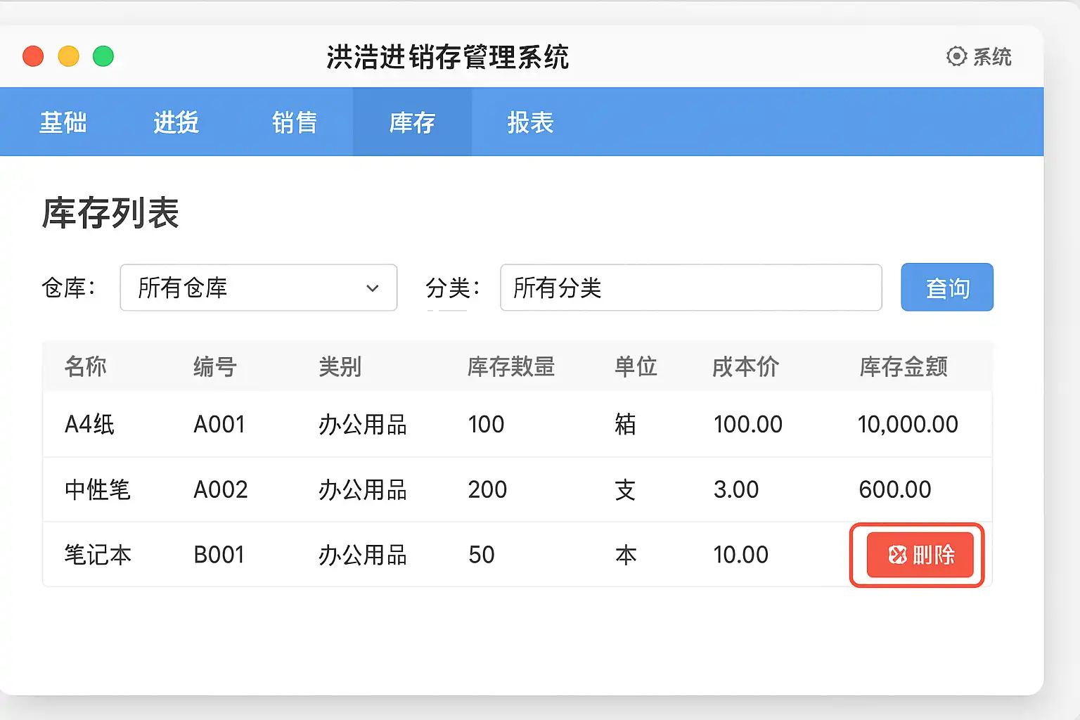 《洪浩进销存管理系统怎么删除库存》