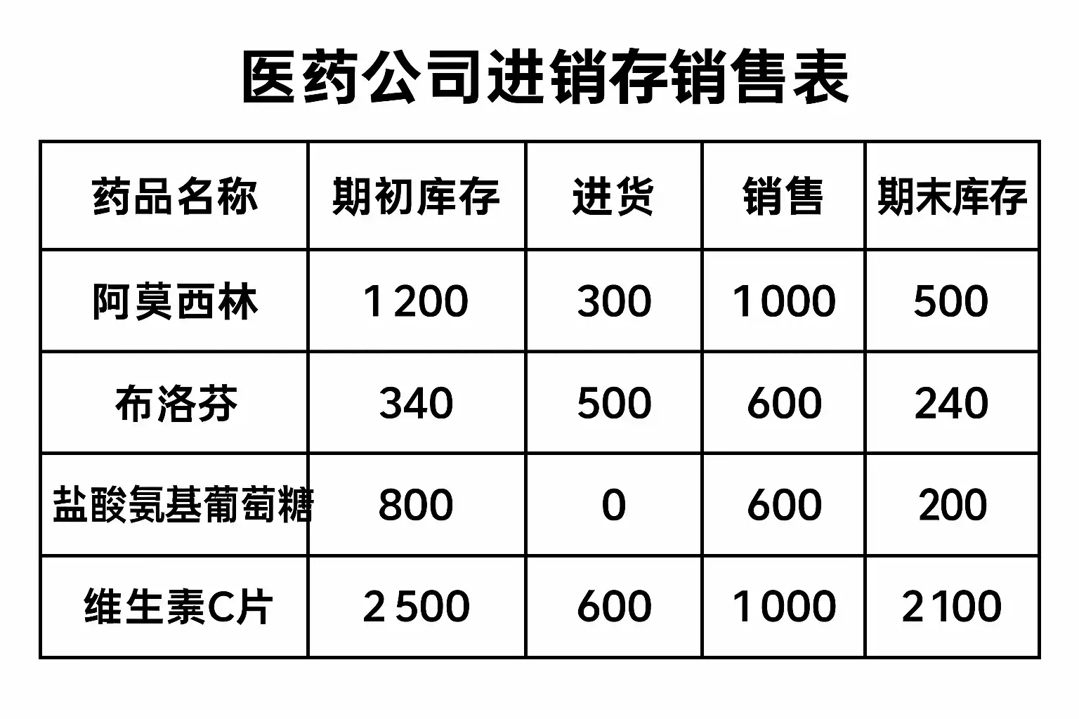 | 2024-06-01 购入 阿莫西林 20240601A 100瓶 ¥12.00 ¥1200.00 国药集团 2026-05-31 张三 |