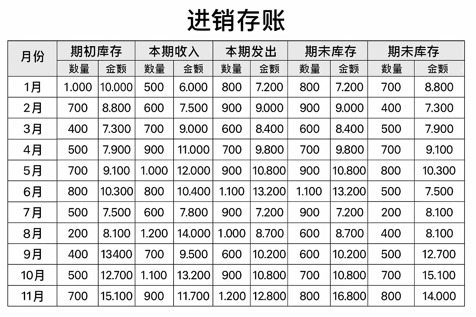 一年进销存账通常按以下结构设计: