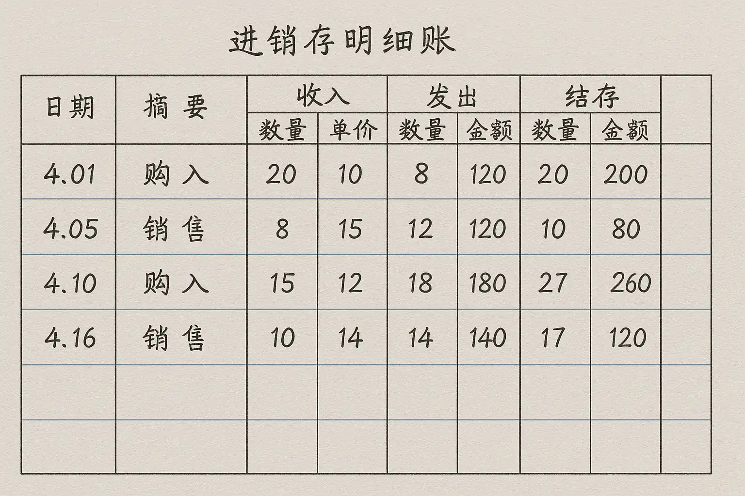 | 第五步 | 随时更新“结存”栏反映当前库存 | 保证数量与实际一致 |