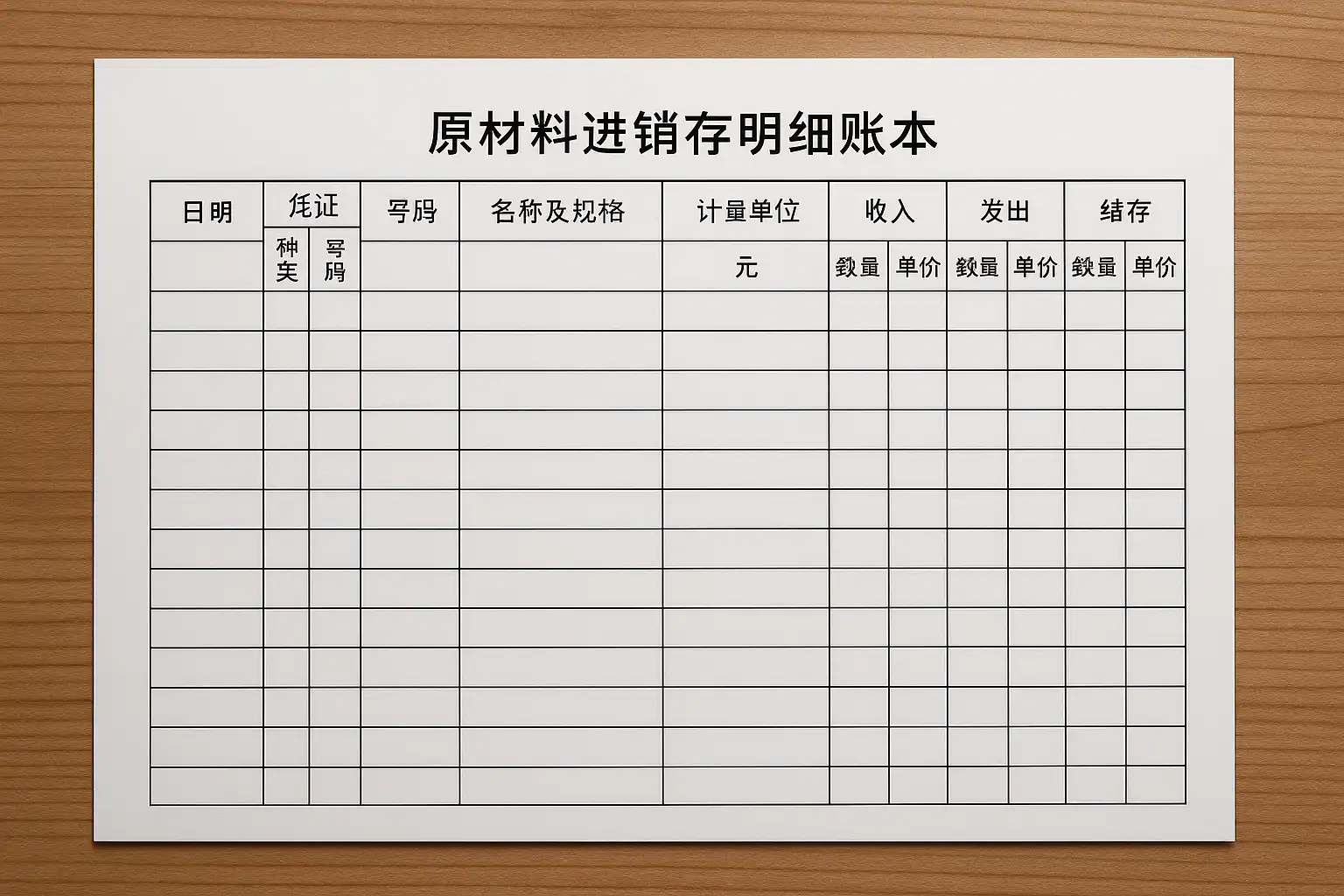 原材料进销存明细账本常见栏目设计