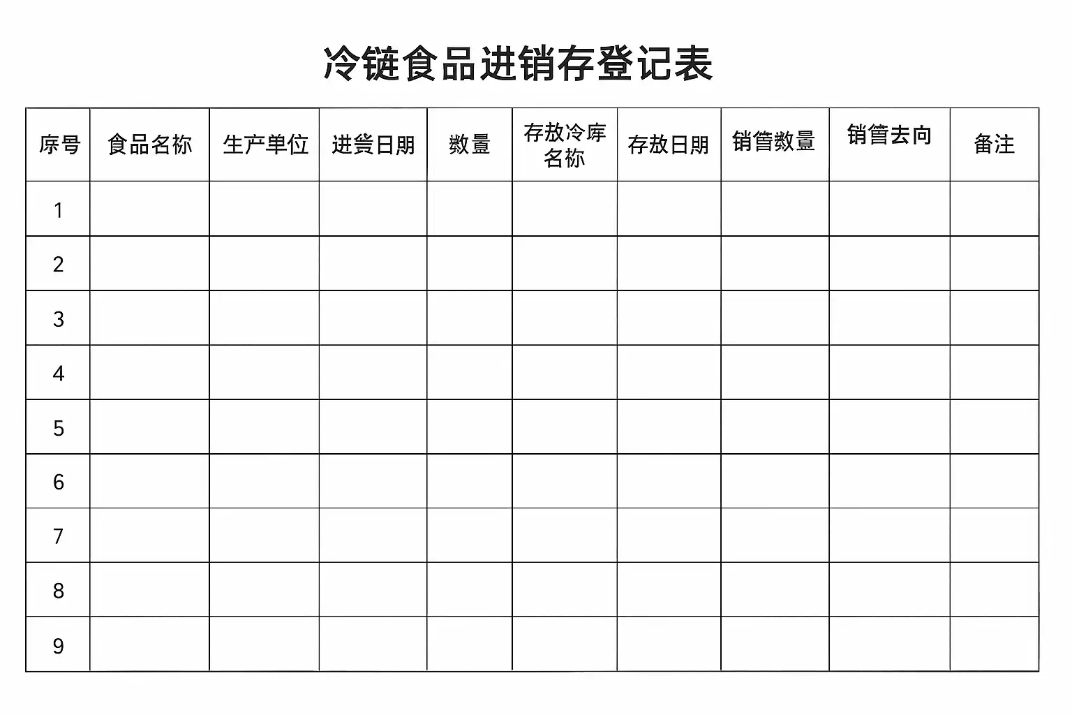 冷链食品因其对温度敏感,对储运过程有严格要求。建立并规范填写进销存登记表,不仅是保障食品安全和质量可追溯的重要手段,也是企业合规经营、防范风险的必要措施。