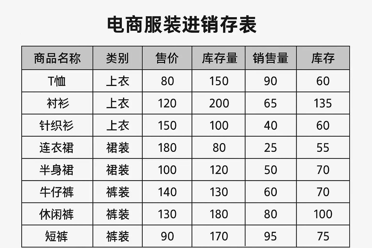 电商服装企业每日面临大量商品流转,对进销存表的准确性和实用性提出了更高要求。设计一个合适的进销存表,需要首先明确其核心作用: