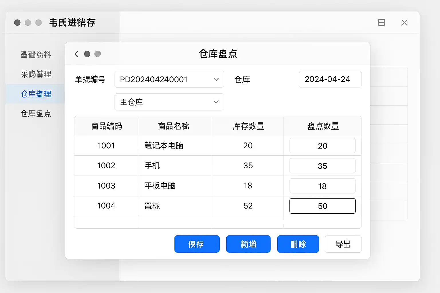 二、韦氏进销存软件仓库盘点操作步骤详解