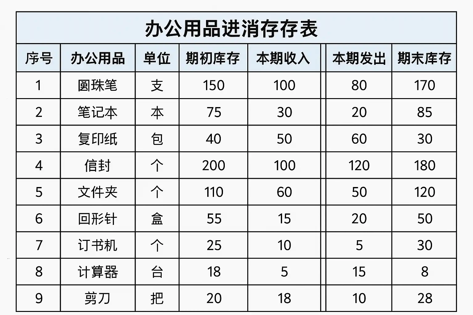 办公用品的进销存表应该如何建立?