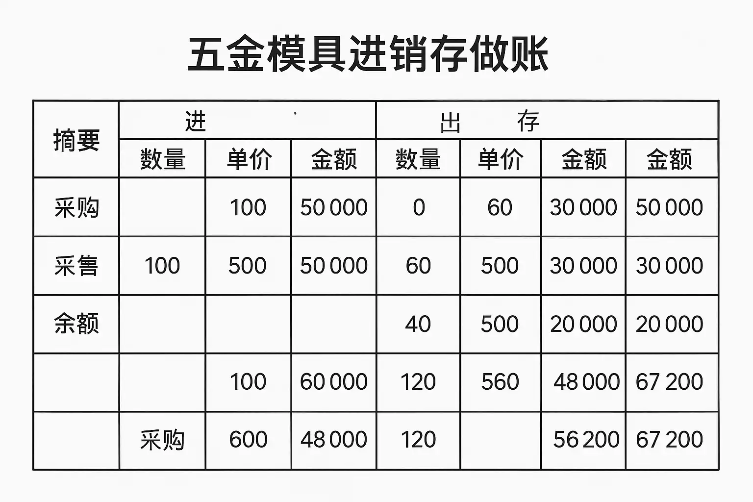 五金模具属于高价值且品类繁多的工业品,其进销存做账涉及物料采购、产品入库、销售出库及库存核算等环节。以下是标准流程:
