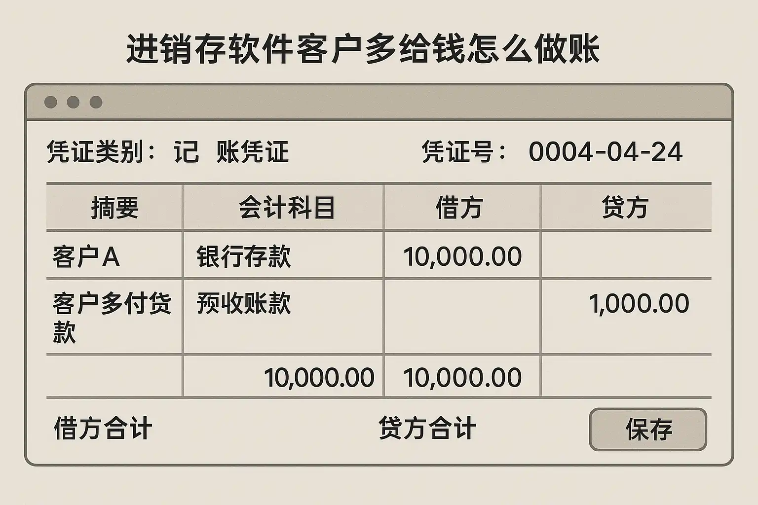 客户多给钱后进销存软件如何生成正确凭证?