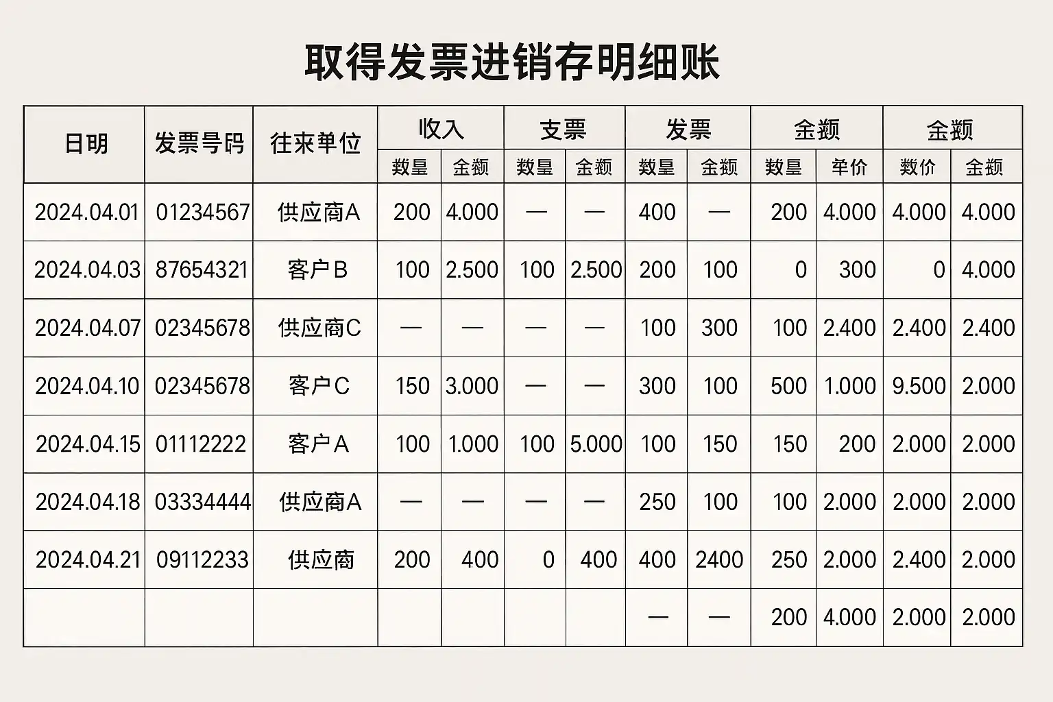 取得发票进销存明细账怎么做?