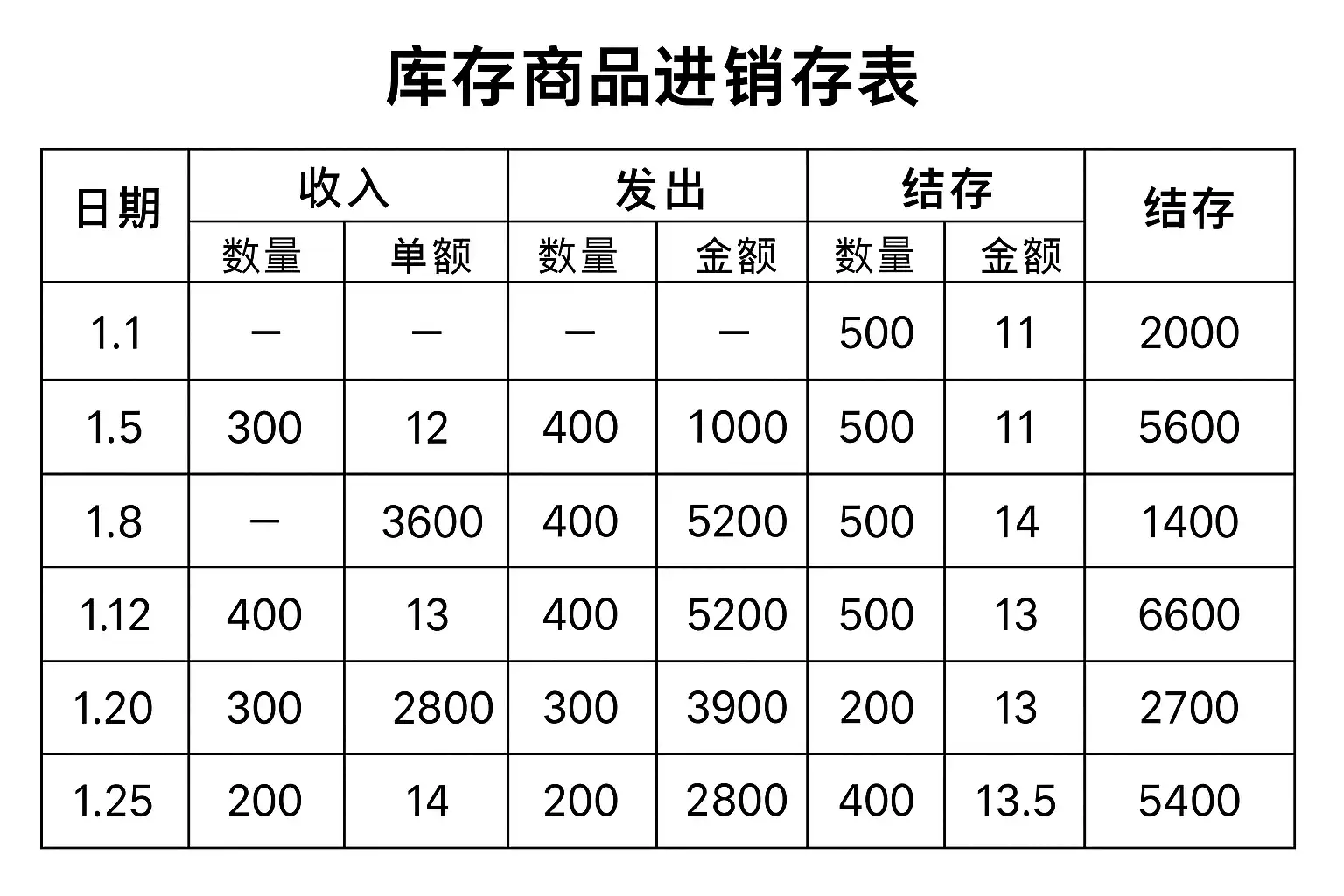 进销存表(Inventory In-Out-Stock Sheet)是反映企业各类商品在一定时期内收发存动态及结余情况的报表。其基础结构一般包括以下主要栏目: