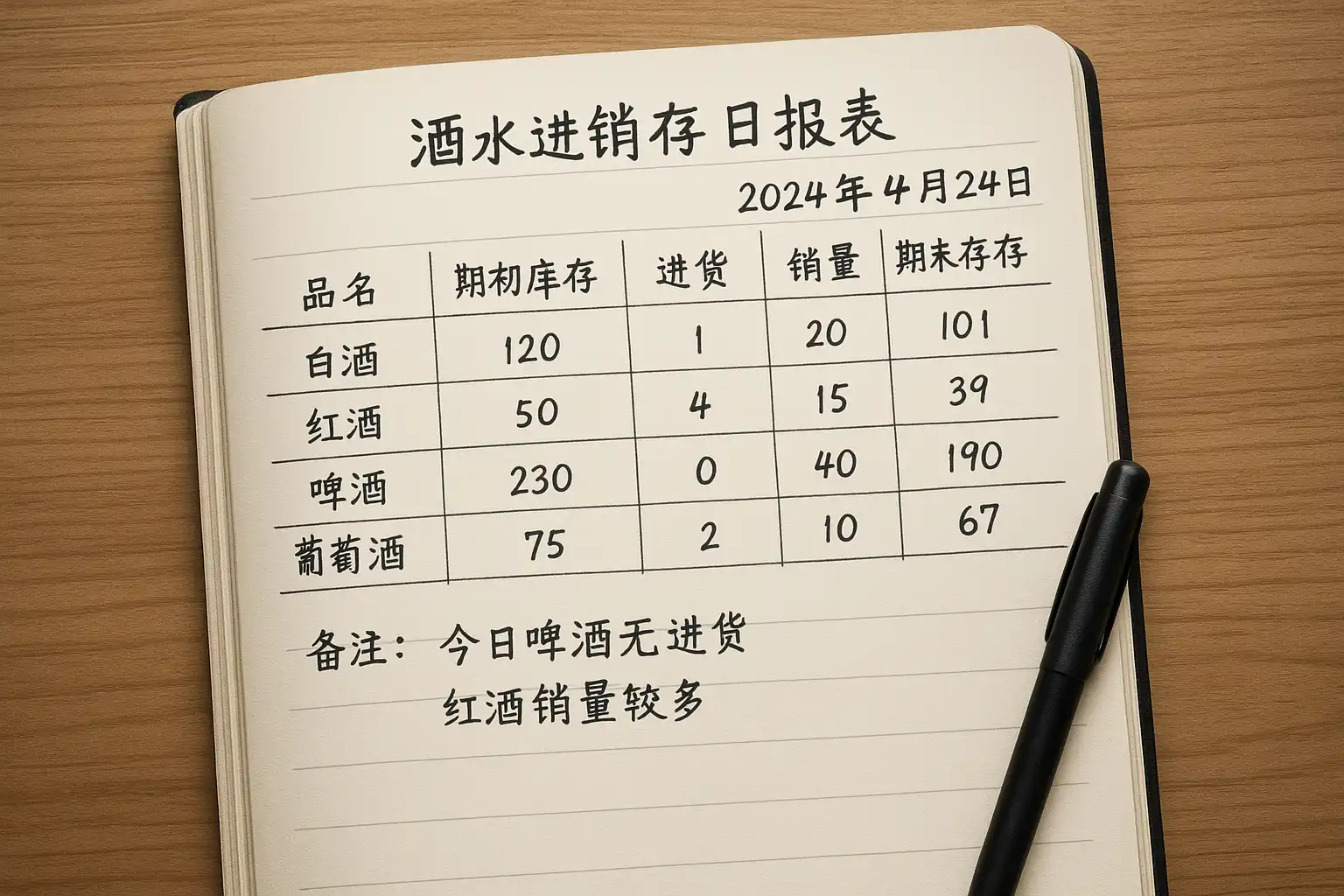 我刚开始负责酒水进销存的日报表记录工作,不太清楚手记怎么写才算规范,内容应该包含哪些重点,如何确保数据准确和结构清晰?
