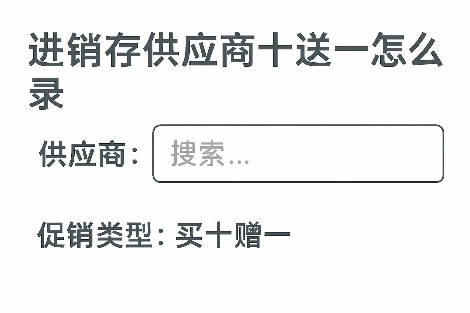 我在使用进销存系统管理供应商货物时,听说有‘十送一’的优惠录入方法,但具体怎么操作才正确?有没有详细步骤说明,避免误操作影响库存和账目?