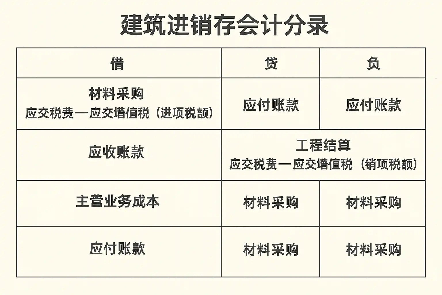 在建筑行业,原材料(如钢材、水泥等)采购是成本的重要组成部分。该环节常见会计分录如下: