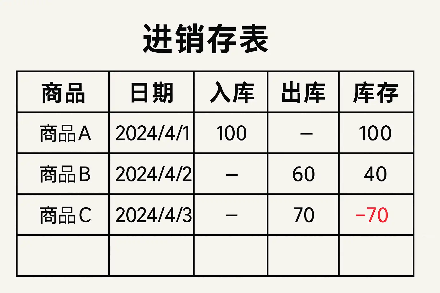 在日常企业管理与仓储运营中,进销存表用于记录商品的采购(进)、销售(销)与库存(存)数据。正常情况下,库存数量应为零或正值。当出现负数时,通常意味着某个环节发生了异常。这些异常主要包括以下几类: