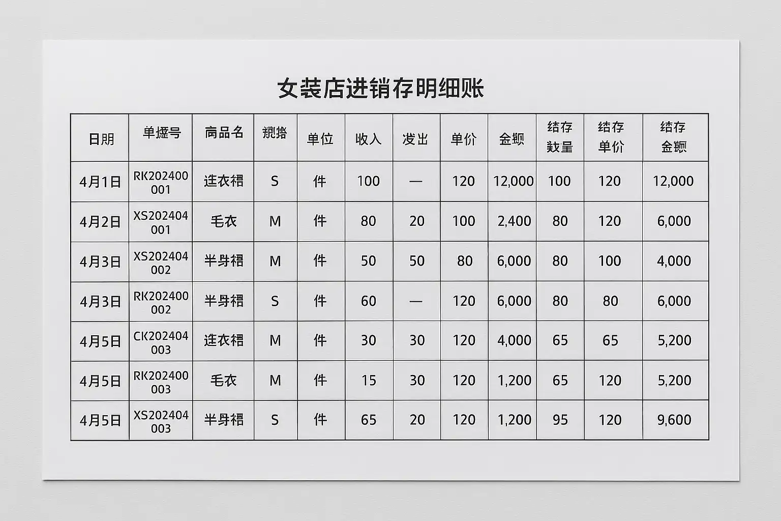 一、明确女装店进销存明细账的基本要求
