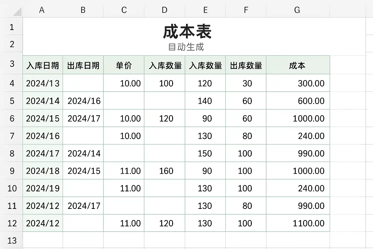 excel进销存自动生成成本表教程,如何快速实现成本统计?
