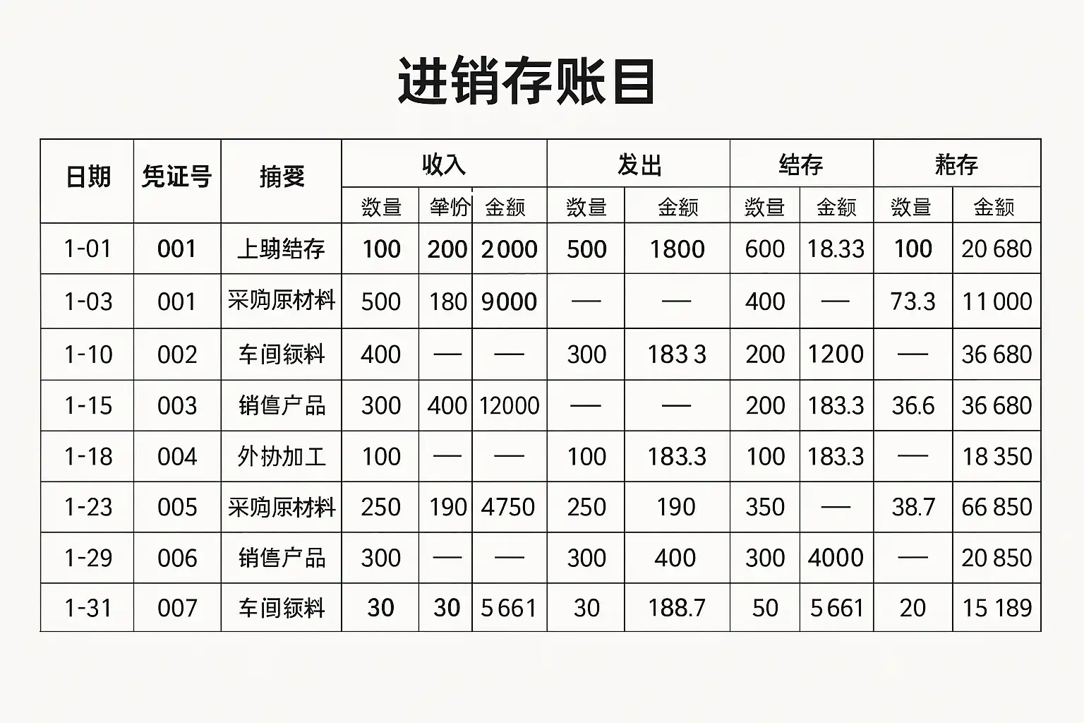 - 建议设立辅助明细科目,如“原材料—A件”、“库存商品—B型号”,便于多维度分析。