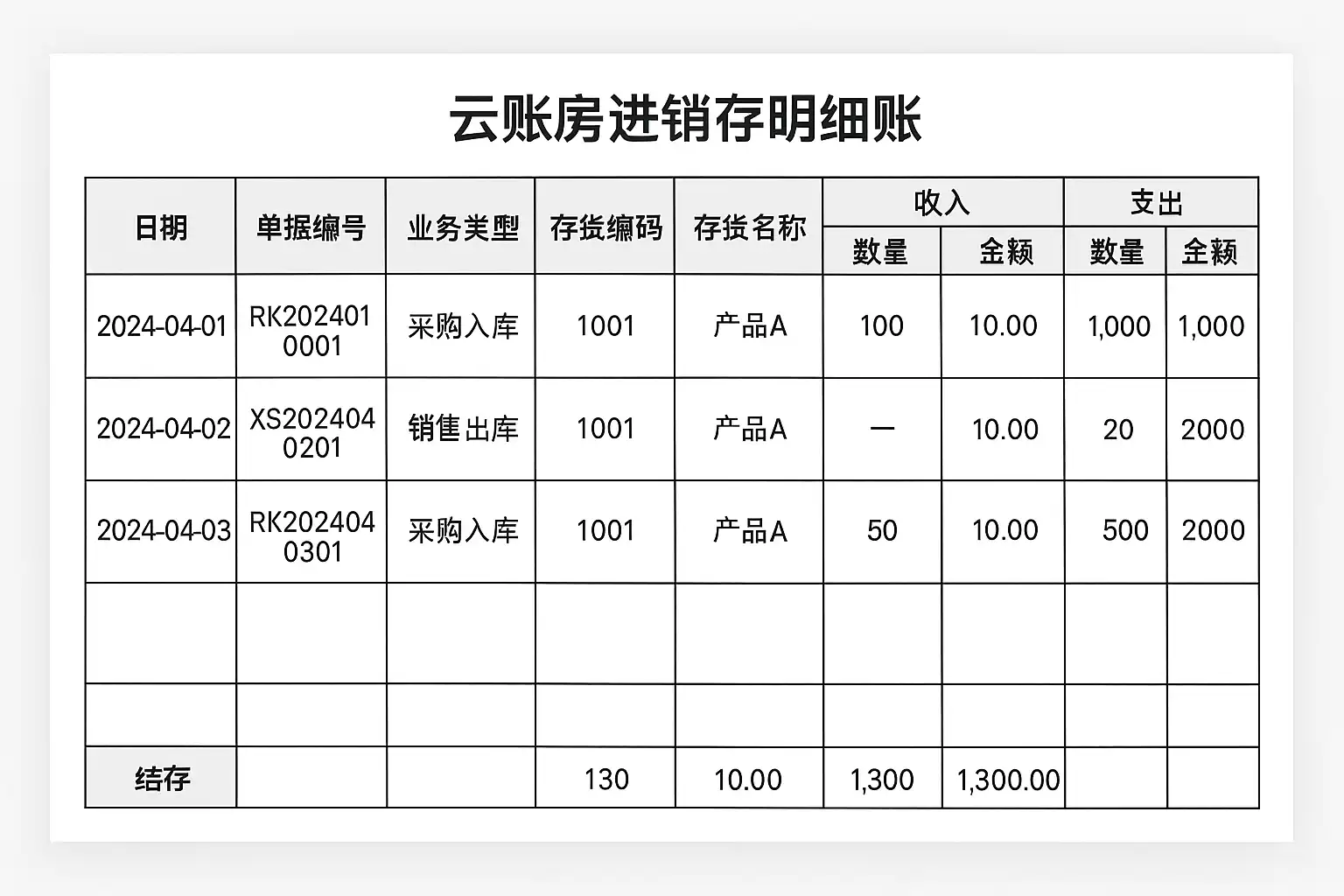 || 商品名称 || 月初结余 || 本月入库 || 本月出库 || 月末结余 || 销售毛利率 ||||:--------:||:---------:||:---------:||:---------:||:---------:||:----------:|||| 商品A || 500 || 200 || -300 || 400 || 35% |||| 商品B || 800 || 150 || -250 || 700 || 28% ||通过上述报表,可直观反映每一款产品在任意时间区间内的运营状况,为采购决策和营销策略制定提供依据。