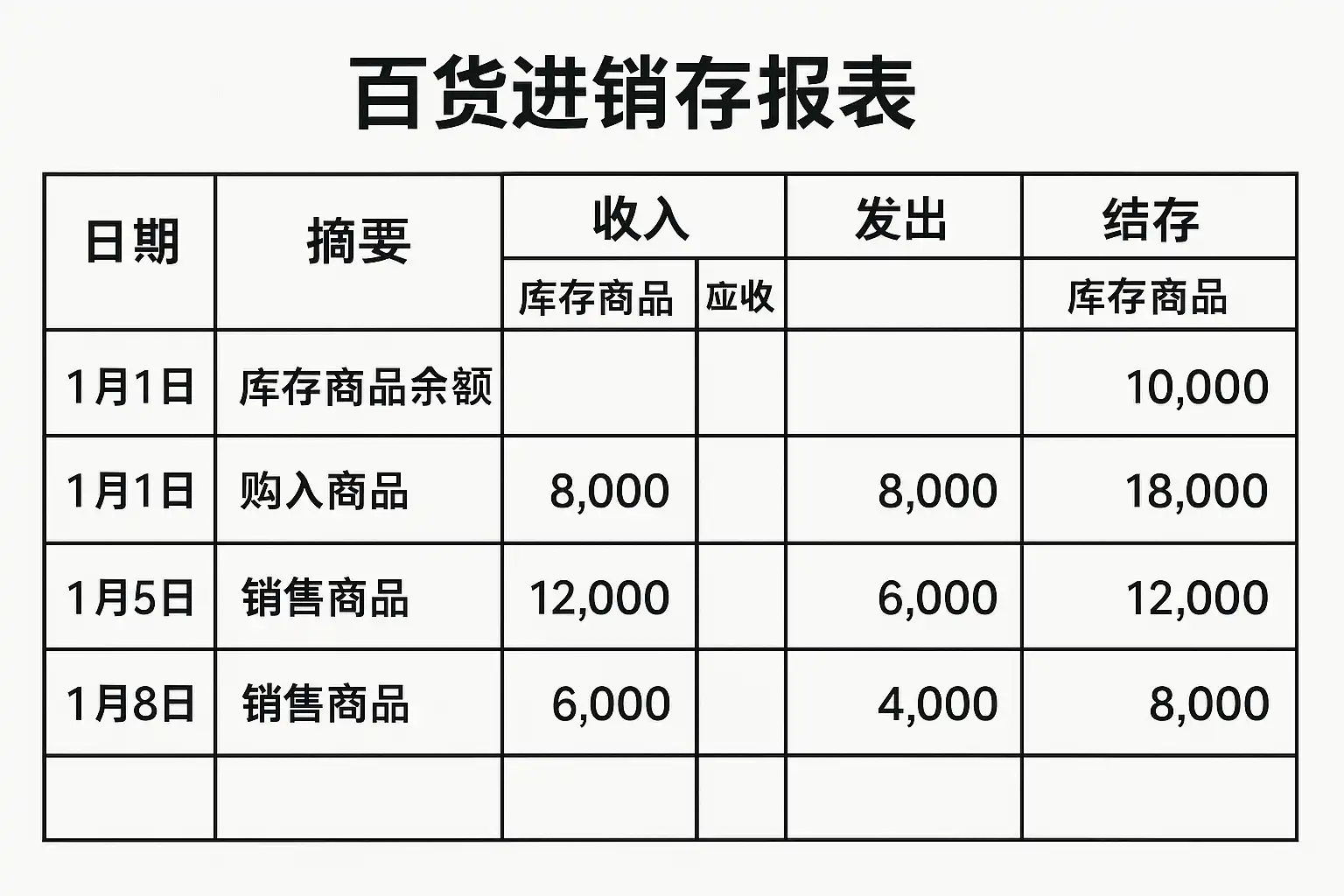 百货行业由于商品品类多样,进出频繁,对进销存报表分录的准确性和规范性要求极高。一个科学完整的分录体系通常包括以下几个核心要素: