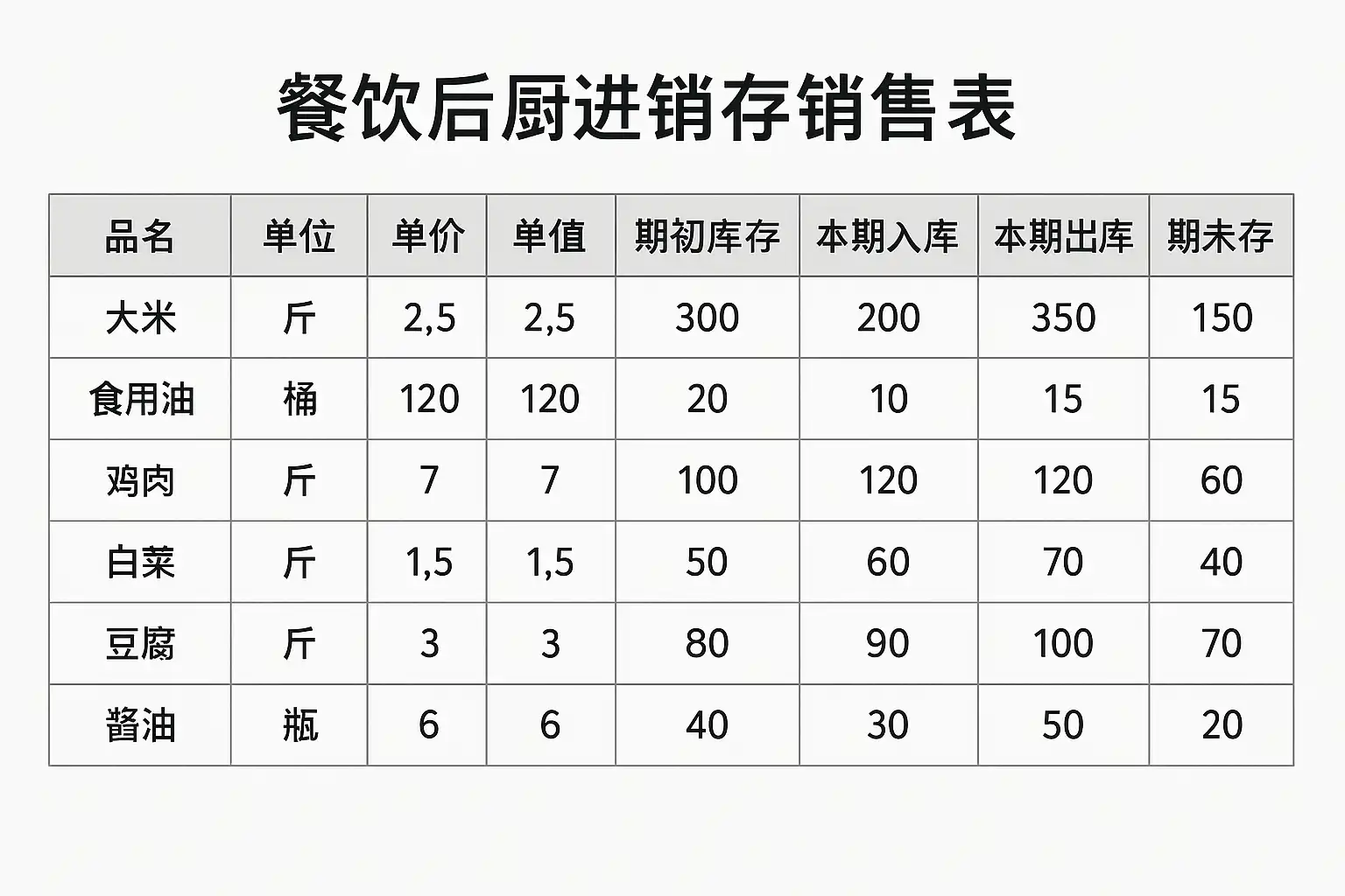 一、明确餐饮后厨进销存销售表的核心内容