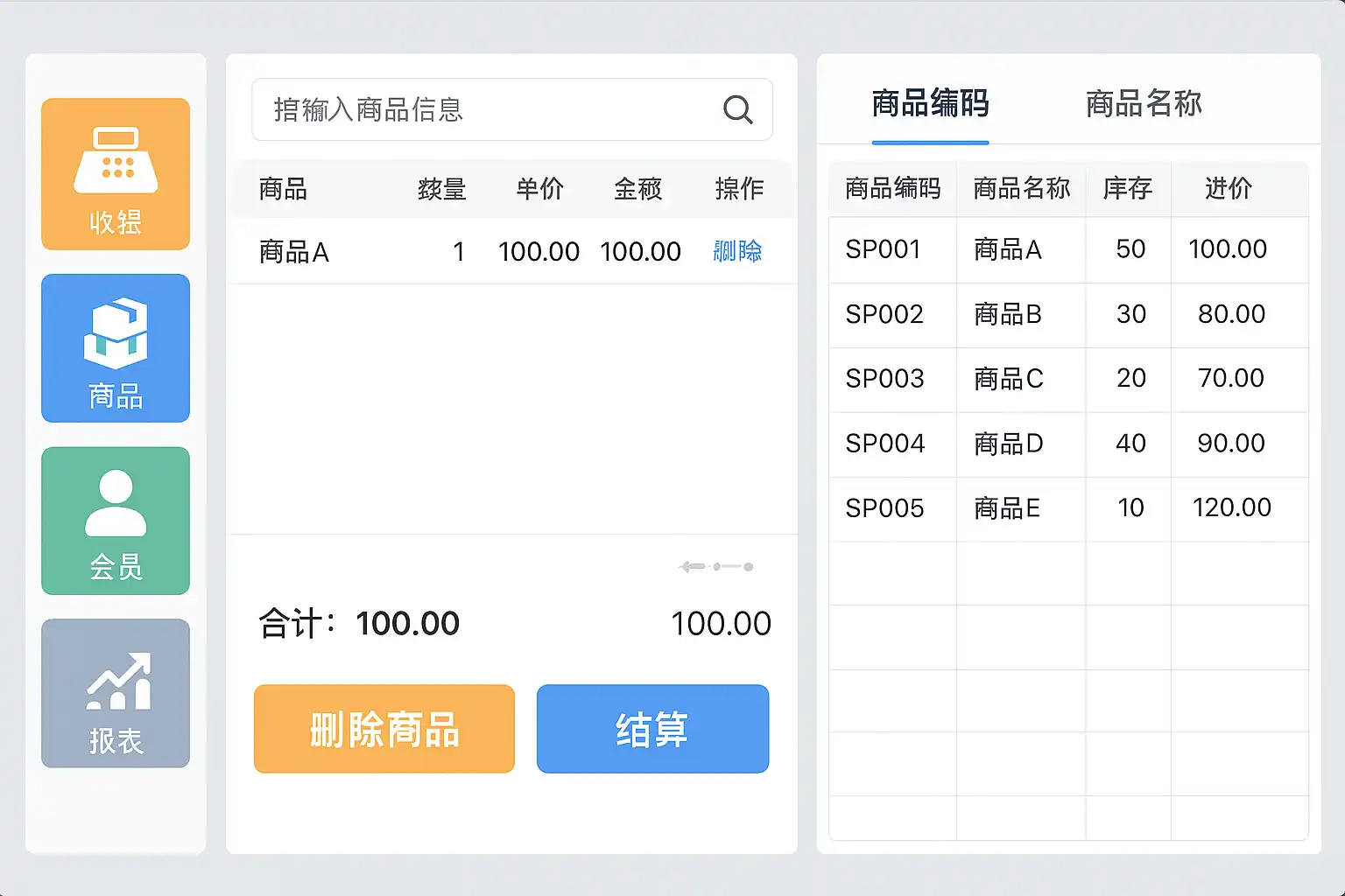 - 店铺初期若只有几种产品,可以先用传统POS机,但业务拓展后极易产生混乱和漏洞。
