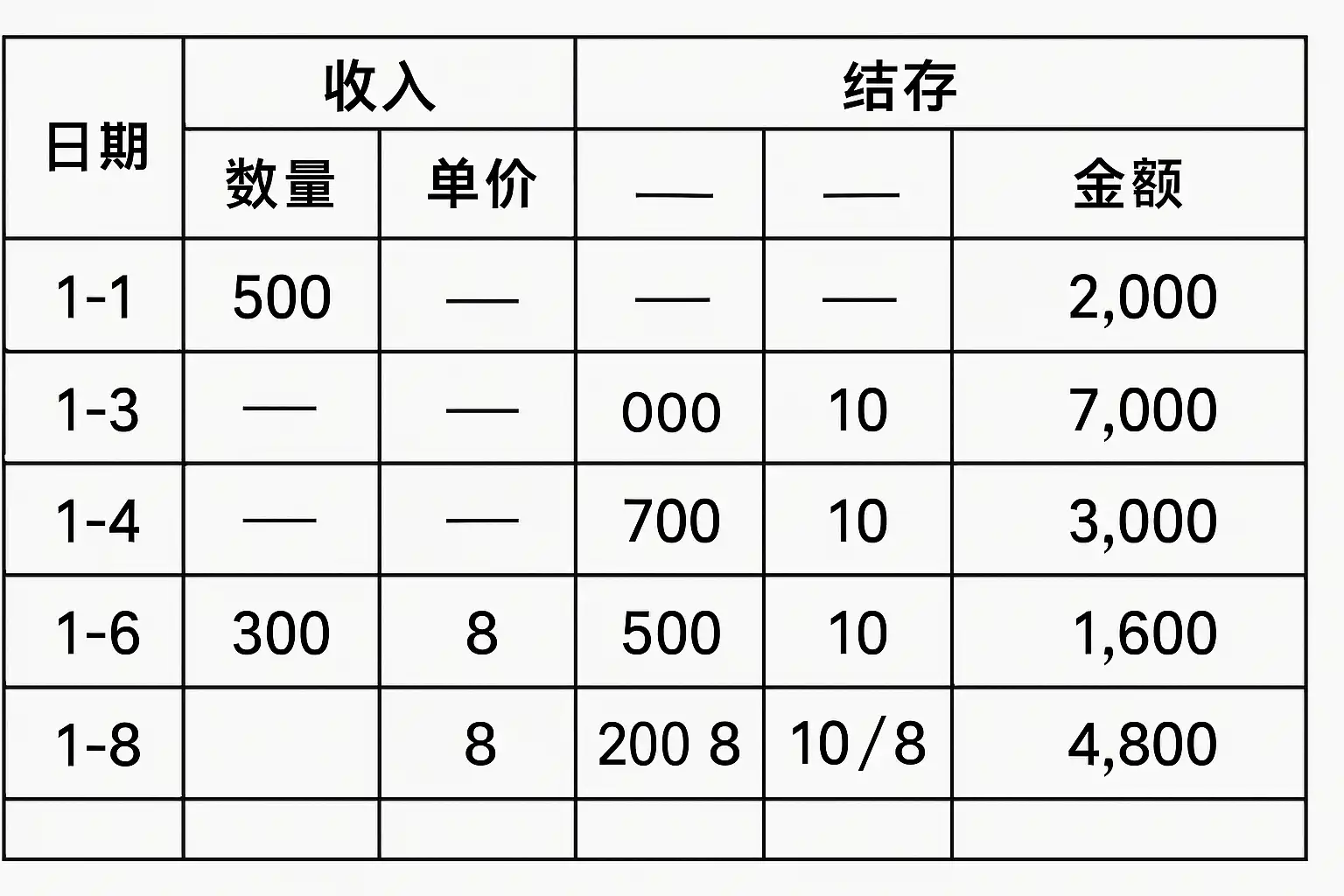 *注:实际应用中出库单价需依据所选核算方法动态确定。