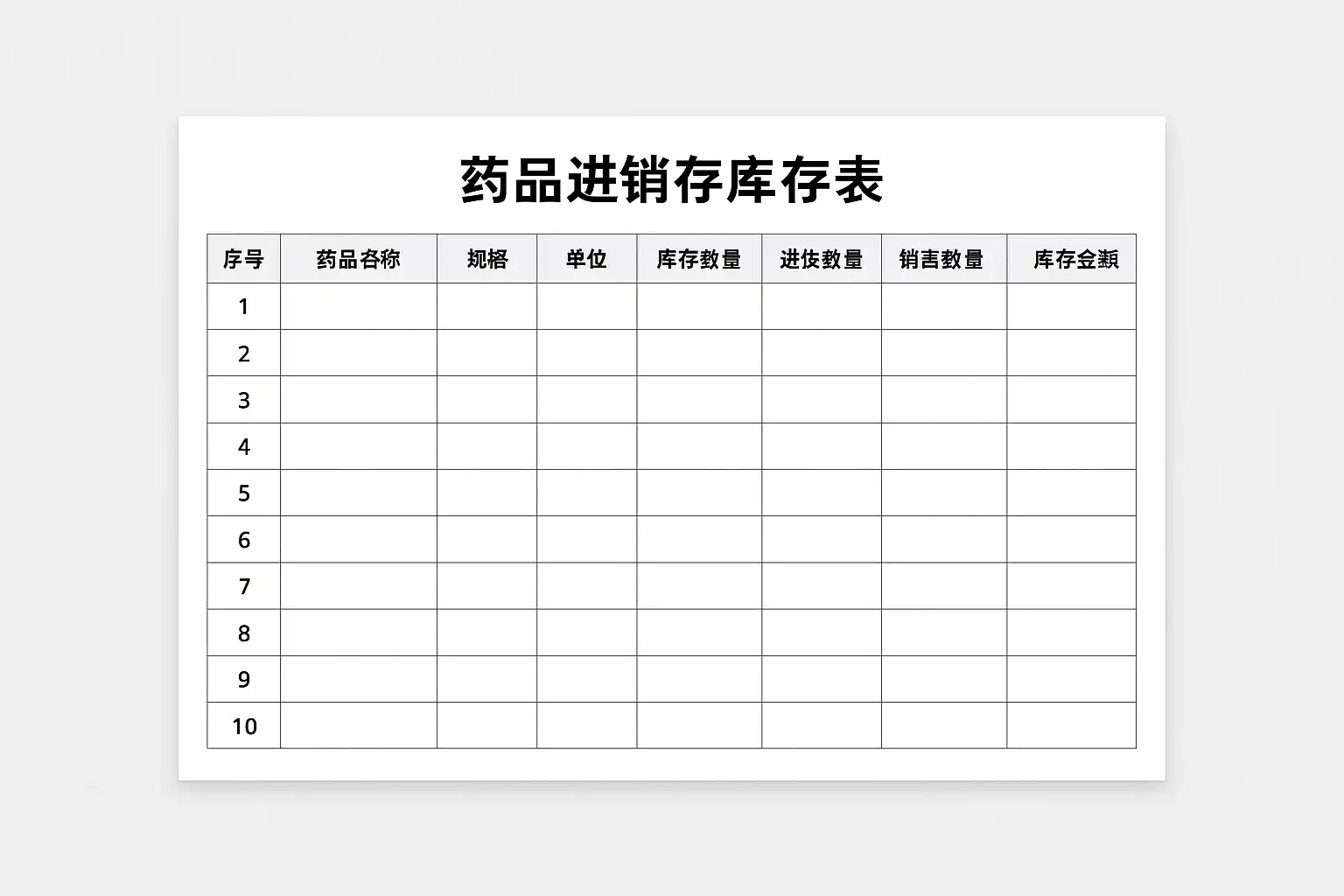 药品进销存库存表作为药房和医疗机构的重要工具,其模板需覆盖以下核心数据项: