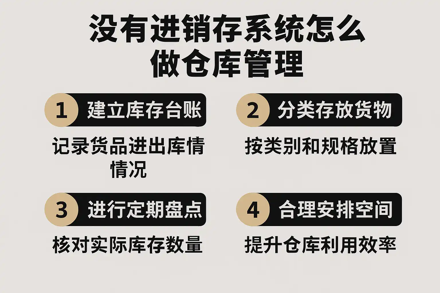 在没有进销存系统的情况下,可以通过以下方法进行有效的仓库管理:
