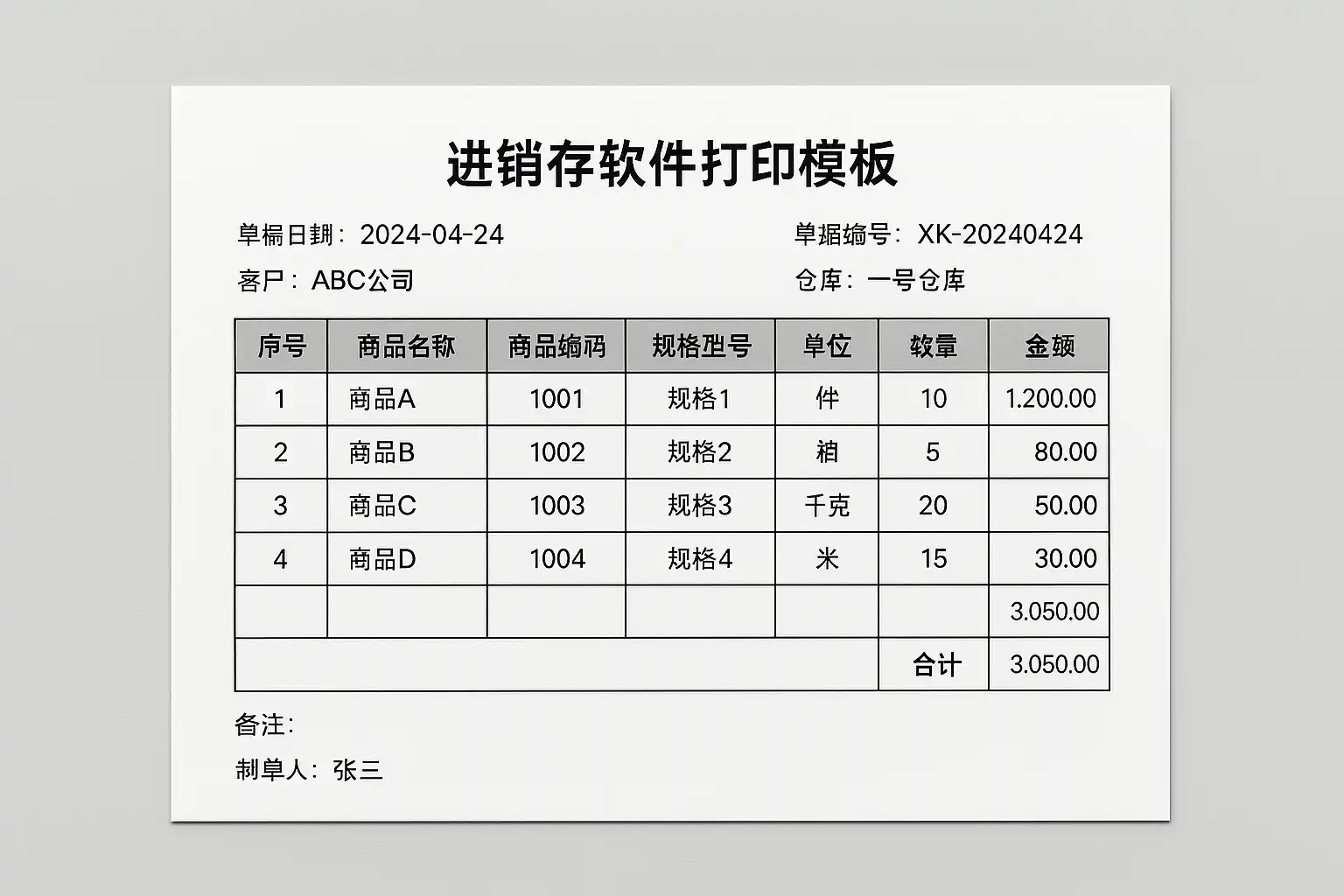 一、进销存软件打印模板的基本原理