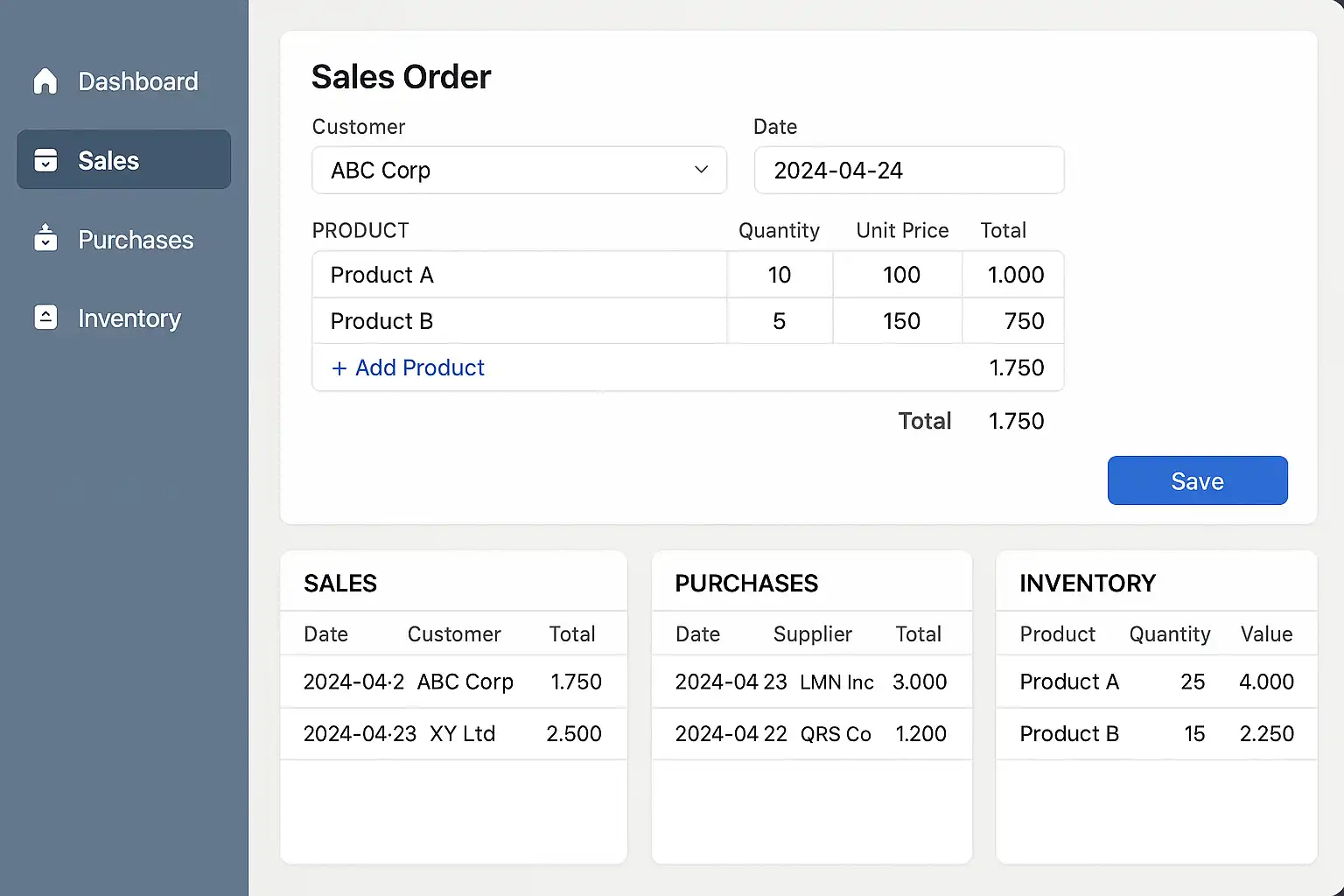 - 报表中心:库存盘点报表、月度采购/销售汇总