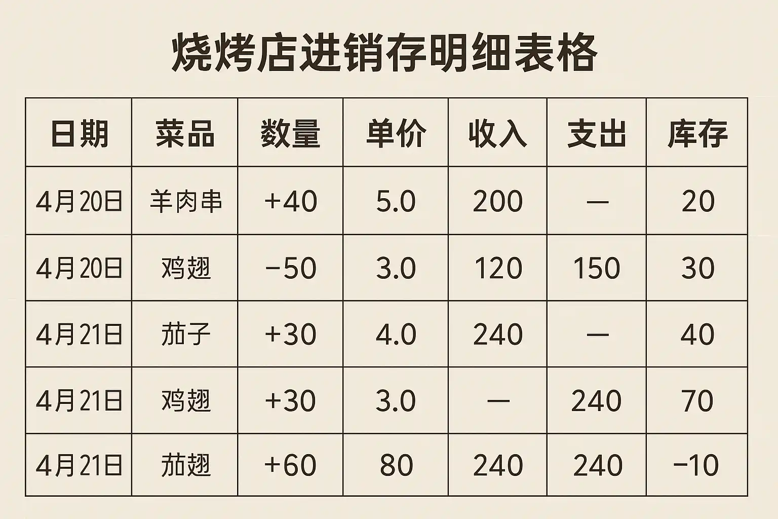 怎样利用进销存明细表格优化烧烤店的库存管理?