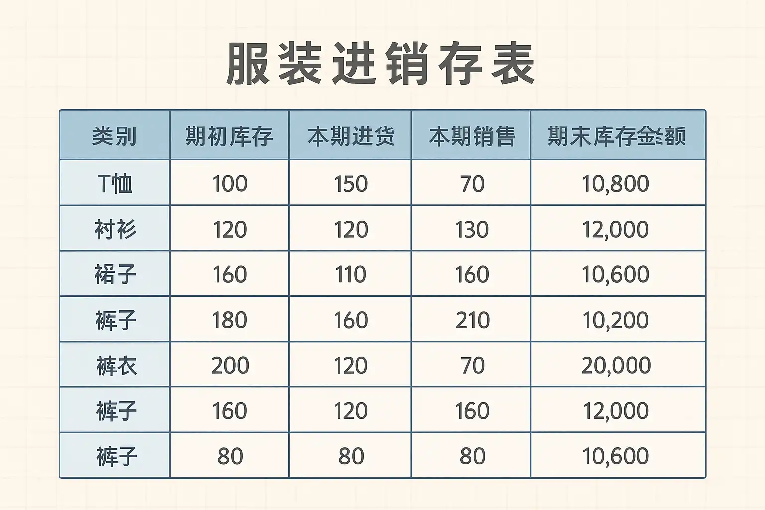 《服装进销存表格怎么做好看图片》
