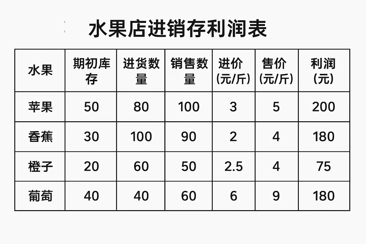 作为一个刚开水果店的小白,我对如何制作进销存利润表格感到困惑。尤其是不知道哪些数据需要记录,怎样通过表格准确反映进货、销售和库存的情况。