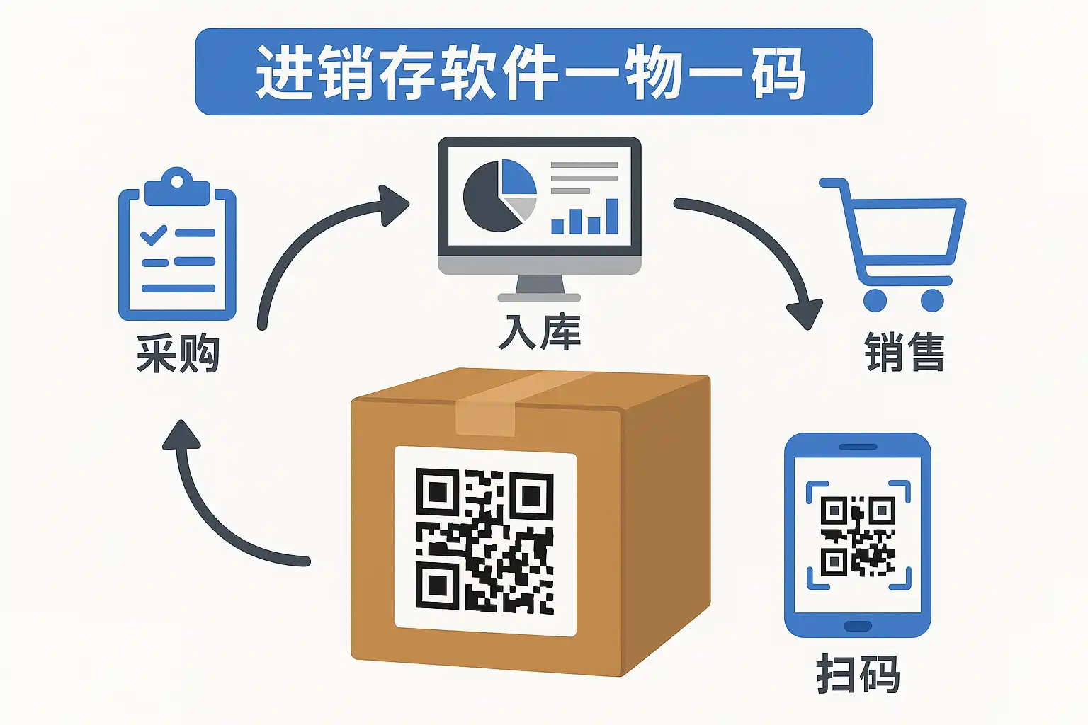 一物一码是指给每一个库存商品赋予唯一的二维码或条形码,实现从采购、库存到销售全流程的唯一标识管理。相比传统批量条码,一物一码能精准追踪每件商品,提升进销存软件的数据准确性和防伪能力。