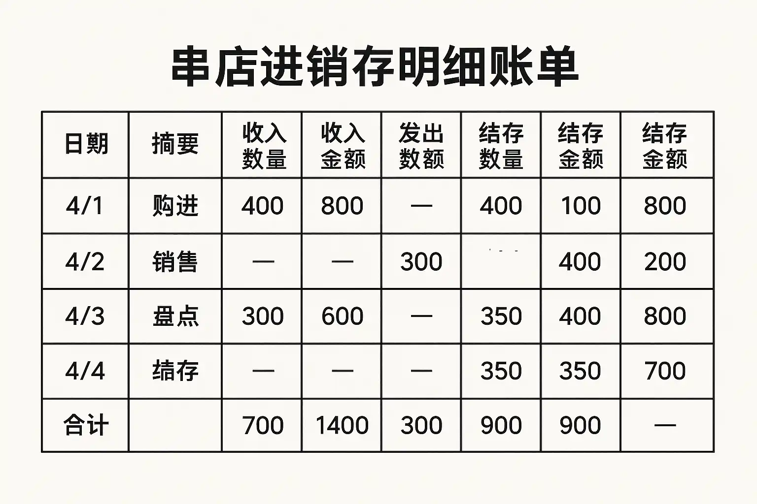 - 结余(期末余额):当前剩余可用的商品数量,用于判断是否需要补充备货。