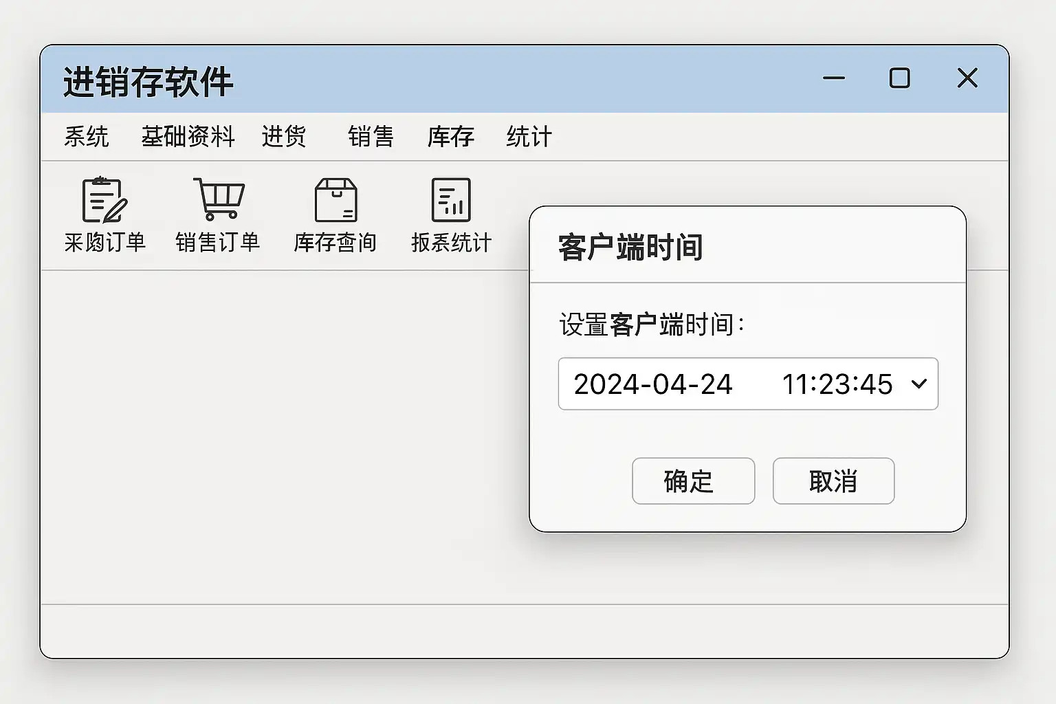 进销存软件依赖准确的客户端时间来生成订单编号、记录库存变动及财务流水。错误的客户端时间可能导致: