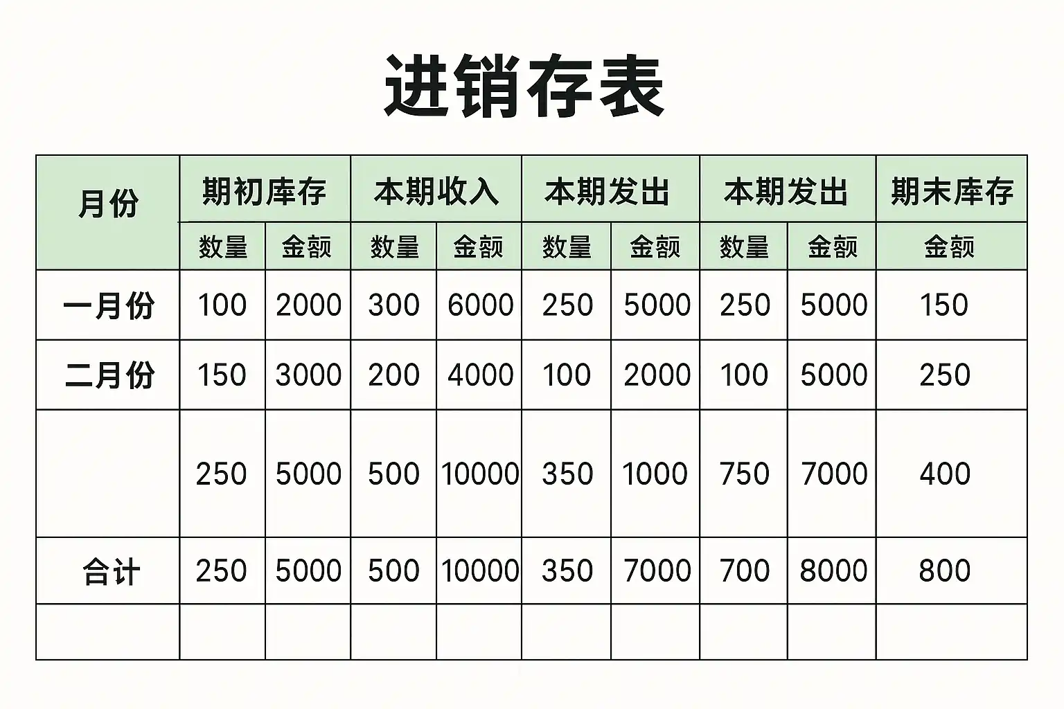 制作一份高效的2个月进销存表格,首先应当理清其基本结构及所需包含的核心数据。标准进销存表一般包括采购(进货)、销售(出库)、库存三个主要环节,每个环节又细分为若干必填项。