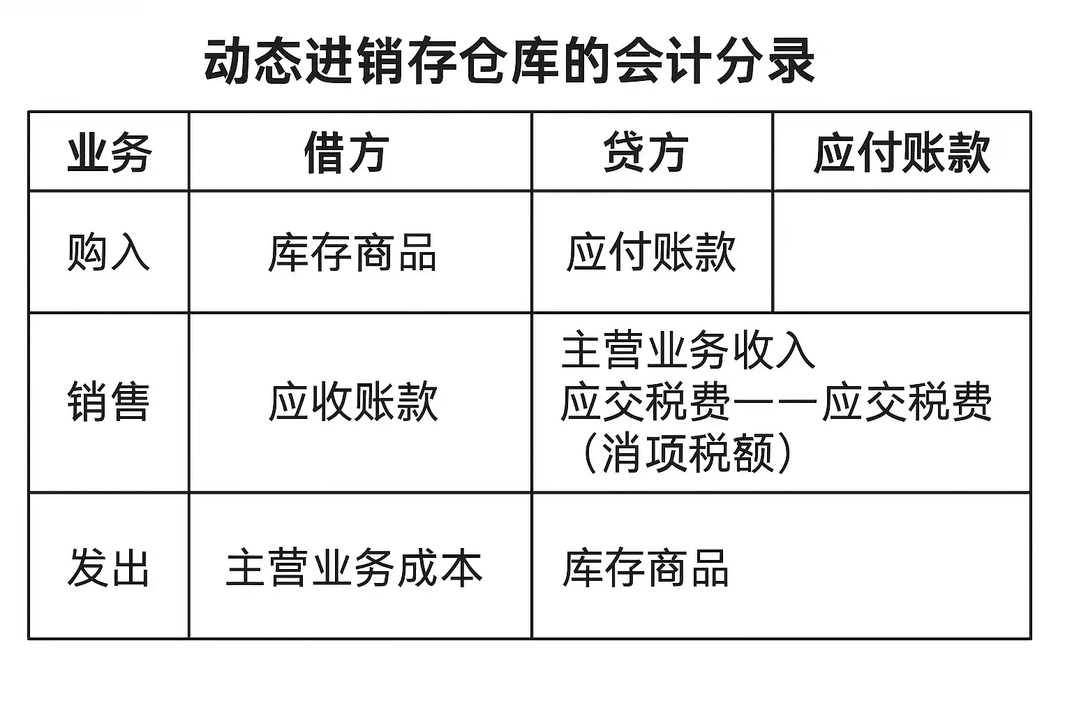 动态进销存模式下,会计分录需随业务实时变化而同步调整。其基本流程如下: