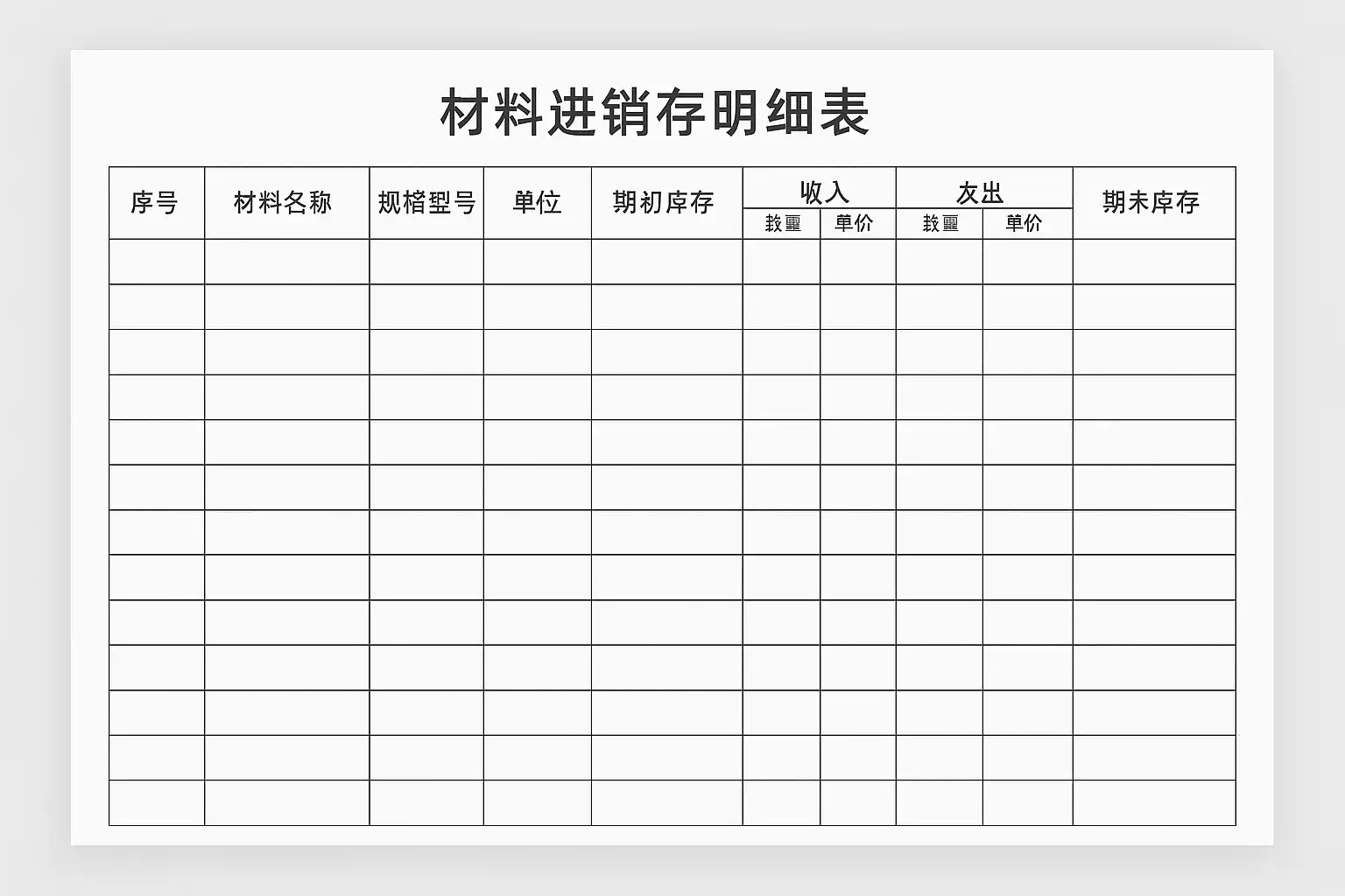 一个优秀的材料进销存明细表模板,首先要明确各项核心字段,并根据企业管理需求进行合理布局。以下为典型字段设置: