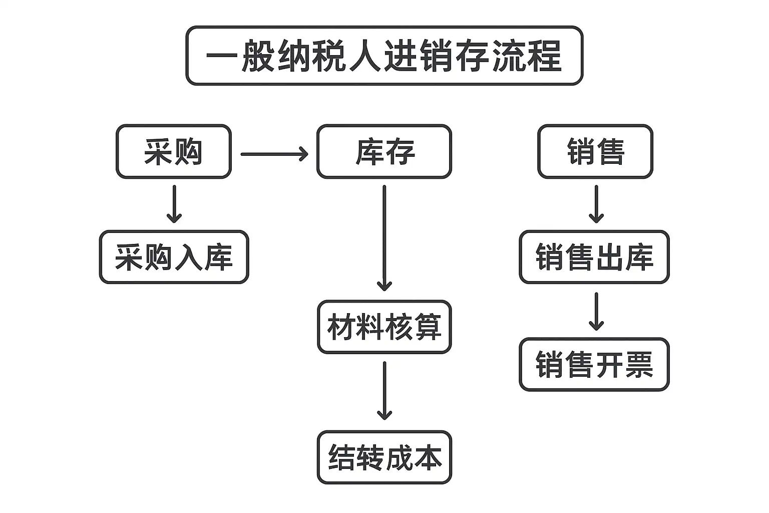 在实际操作中,一般纳税人的进销存业务通常分为以下关键环节: