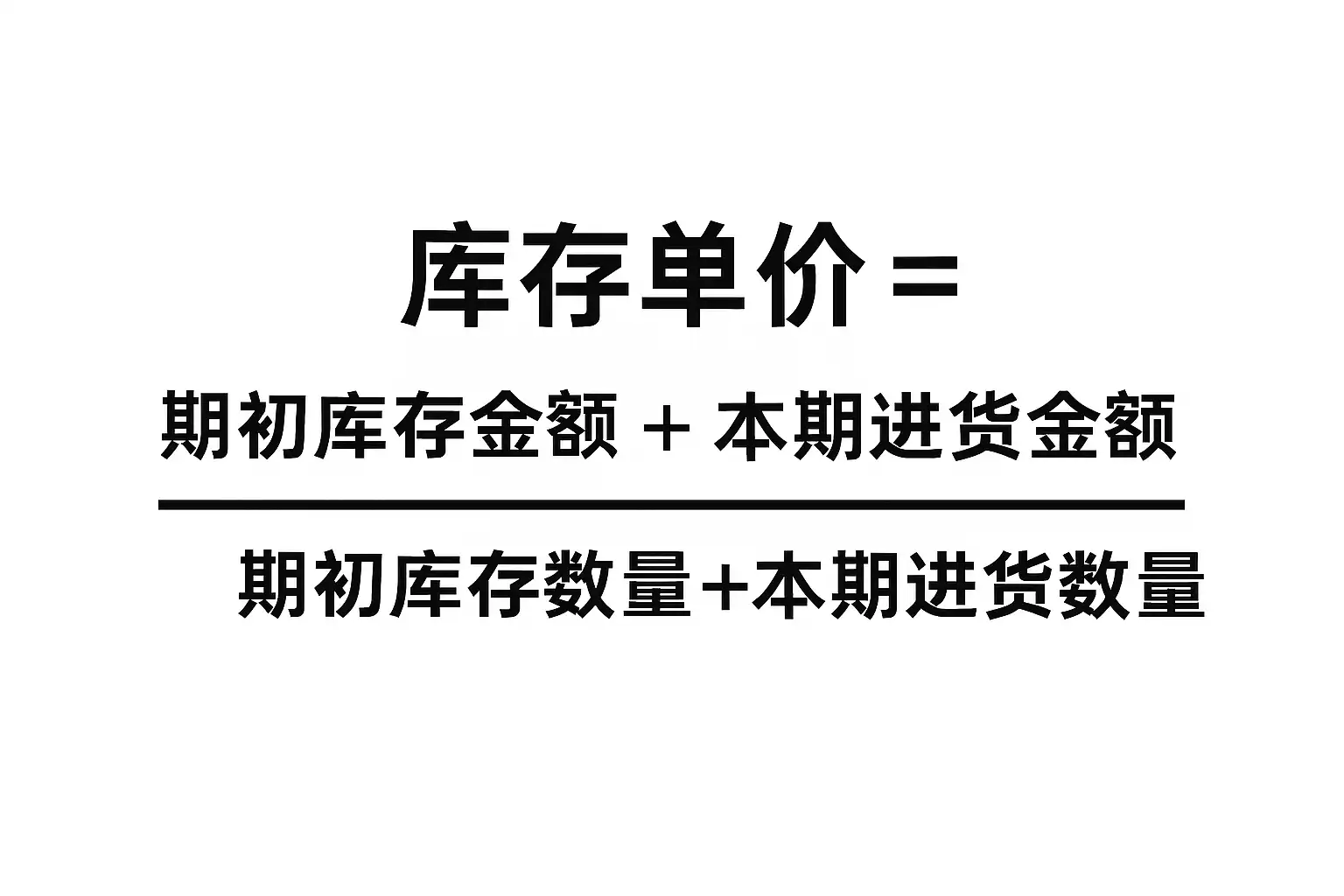 库存单价 = (期初库存金额 + 本期购入金额) / (期初库存数量 + 本期购入数量)