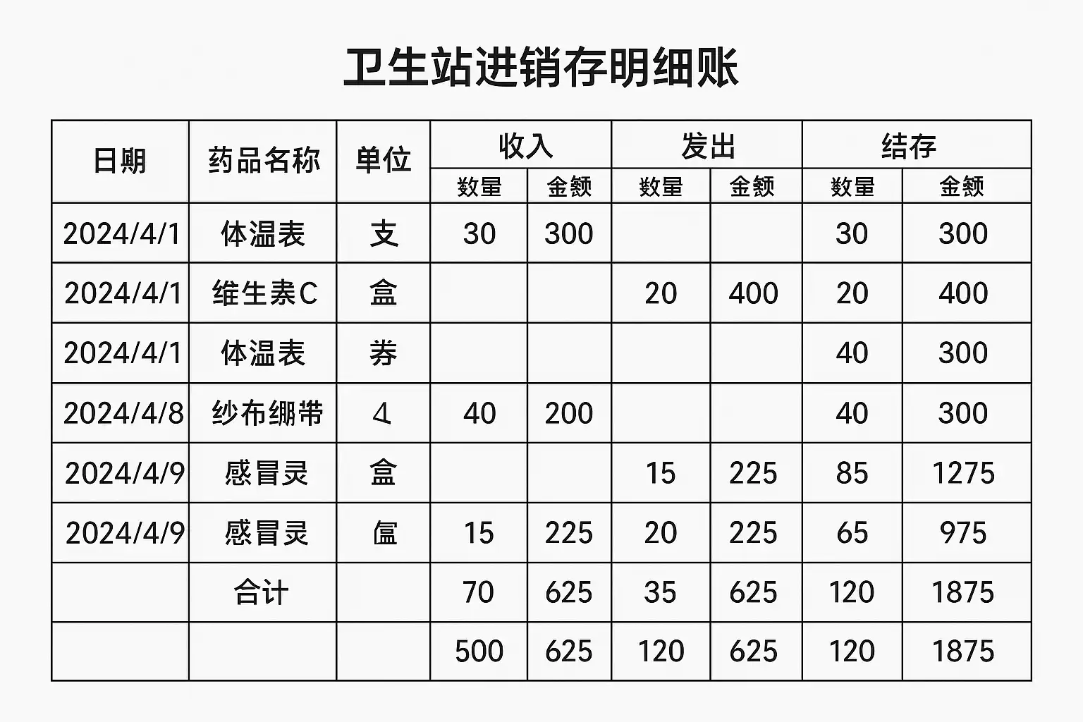 卫生站进销存明细账如何通过表格提升信息密度?