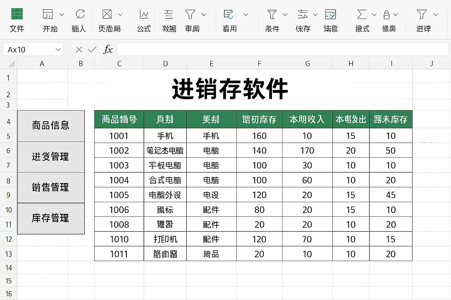 下面以实例说明如何一步步在Excel中搭建一个基础的进销存管理模型。